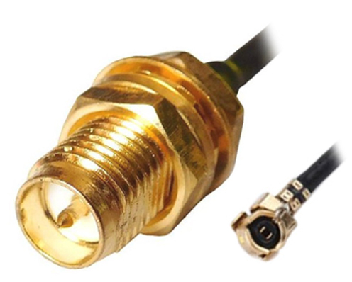Câbles adaptateurs permettant de raccorder une embase uFL avec un connecteur RP-SMA mâle.
