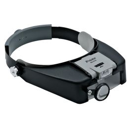 Loupe binoculaire à visière mobile et double éclairage gauche/droite. Serre-tête avec réglage.