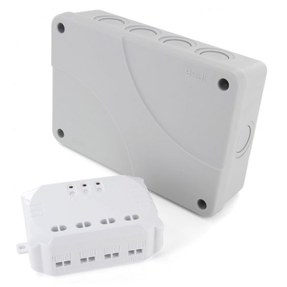 Module de commande sans fil extérieur prévu pour connecter 3 ampoules (230 Vac/3500 W au total maxi) à un réseau sans fil DiO 1.0.