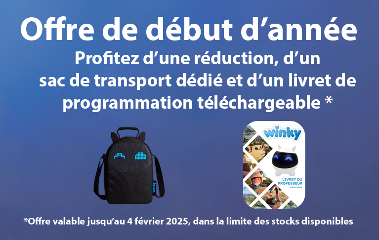 Créé en France en 2017, en collaboration avec l'École Polytechnique, Winky est un robot éducatif pensé pour initier les élèves des cycles 2 et 3 à l'apprentissage de la robotique, de la programmation et des sciences à travers des exercices ludiques. Il s'inscrit parfaitement dans les objectifs du programme scolaire de l'Éducation nationale en offrant un support innovant et interactif pour une éducation moderne.