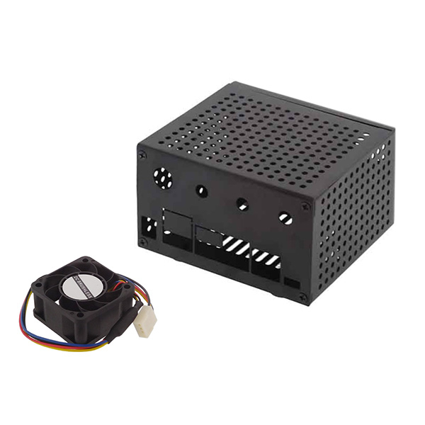 Coffret robuste spécialement conçu pour accueillir une carte NVIDIA Jetson Nano. ​Ce boîtier comporte un support pour caméra et des ouvertures laissant accès à toutes les E/S de la carte.