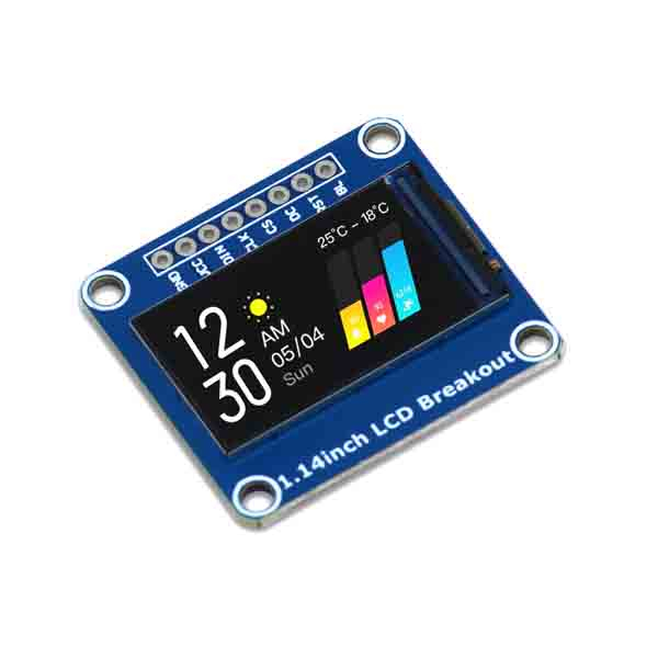 Ecran couleur TFT IPS 1,14'' d'une résolution de 240 x 135 pixels, associé à un lecteur de carte microSD. Cet afficheur est piloté par un driver ST7789 et communique avec un microcontrôleur type Arduino ou compatible via une liaison SPI.