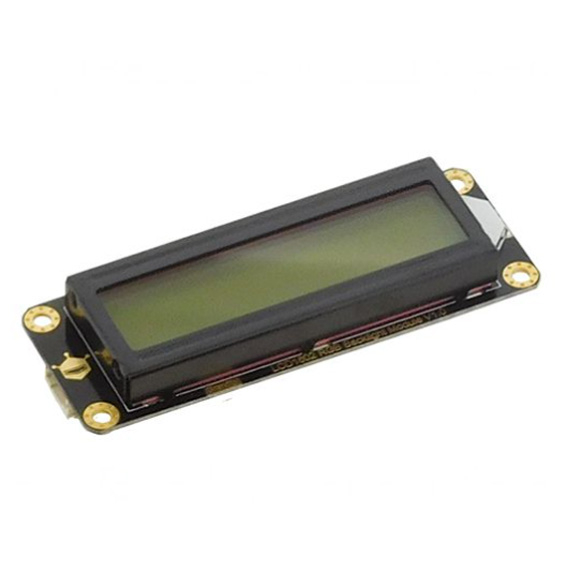 Afficheur LCD 2 x 16 caractères rétro-éclairé se raccordant via le bus I2C sur un microcontrôleur.
