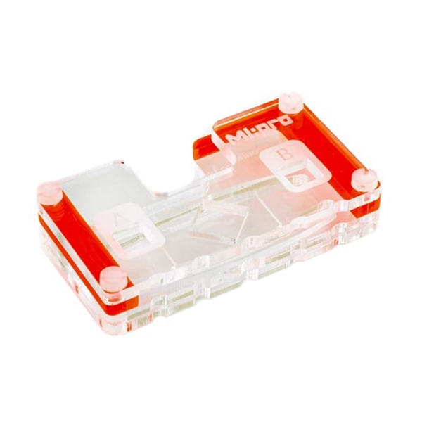 Boîtier transparent avec pattes de fixation latérales spécialement conçu pour accueillir une carte micro:bit.
