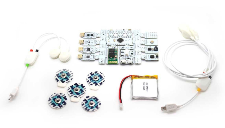 Le BITalino Plugged Kit BT est une plateforme didactique permettant l'acquisition de signaux biologiques chez un être vivant. Les capteurs sont prévus pour une utilisation notamment dans des vêtements connectés.