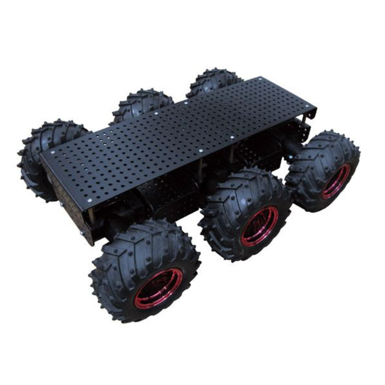 Le Wild Thumper 6WD est un châssis très robuste en aluminium anodisé noir 2 mm conçu pour la robotique intérieure et extérieure. Réduction des moteurs de 75:1.