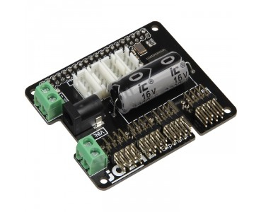 Module Hat pour carte Raspberry Pi basé sur un TB6612FNG permettant le contrôle de 2 moteurs CC jusqu'à 1,2 A par canal. Ce module communique avec la carte Raspberry Pi grâce à une liaison I2C via le port GPIO.