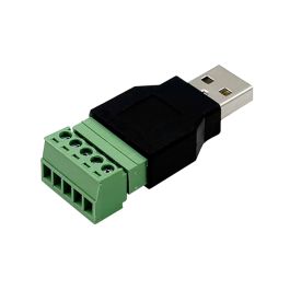 Adaptateur permettant d'obtenir facilement les 5 fils d'un connecteur USB A mâle sur un bornier à vis.