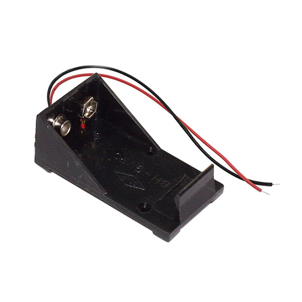 Boîtier pour pile 9 V avec interrupteur ON-OFF à raccordement par fils.