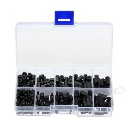 Assortiment de 160 entretoises hexagonales en nylon à filetage M2. Livré avec 50 vis et 50 écrous M2 en nylon.