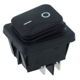 Interrupteur secteur bipolaire 16 A (8 A sous charges inductives). Etanchéité obtenue grâce à un soufflet en caoutchouc.