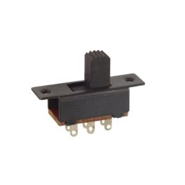 Inverseur à glissière unipolaire. Sorties disponibles sur picots à souder sur circuit imprimé.