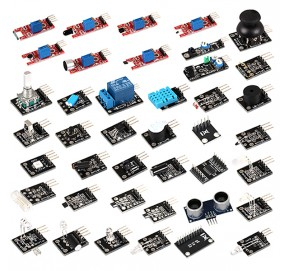 Ensemble de 37 modules et capteurs à but didactique permettant de réaliser rapidement et facilement plusieurs montages et expériences pour Arduino ou compatible.