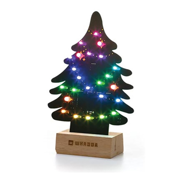 Kit de soudage didactique en technologie CMS (SMD) permettant d’assembler un mini sapin de Noël illuminé par des LEDs montées en surface.