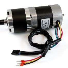 Moteur CC sans balais 57DMWH115 NEMA 23 offrant une vitesse de rotation à 4000 tr/min pour un couple de 5 kg.cm. Compatible avec le module Phidgets Vint DCC1100_0.