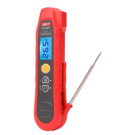 Thermomètre compact combinant les mesures infrarouges à visée laser et à sonde externe (-35 à 300 °C).