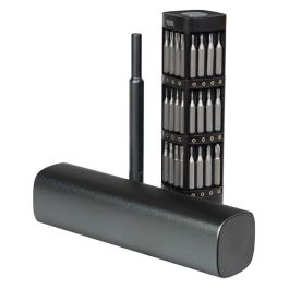 Coffret de 25 pièces dont 17 embouts en chrome-vanadium livrés avec un tournevis porte-embout. Idéal pour la réparation de smartphones, tablettes et consoles.