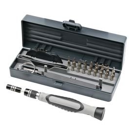 Coffret de 27 outils de précision livrés avec un tournevis porte-embout.